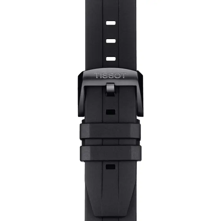 Die Uhr wird mit einem schwarzen Kautschukarmband mit Faltschließe und Taucherverlängerung geliefert. Die Tissot Seastar 1000 Chronograph ist ideal für alle, die professionelle Funktionen, Schweizer Präzision und markantes Design suchen.