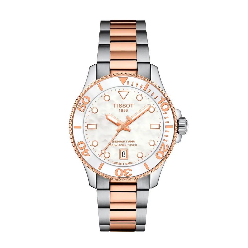 Die Tissot Seastar 1000 Quartz 36mm T120.210.22.111.00 kombiniert sportliche Leistung mit elegantem Design, eine ideale Kombination für Liebhaber von Wasseraktivitäten und Alltagskleidung.