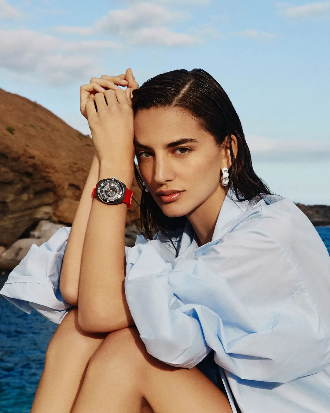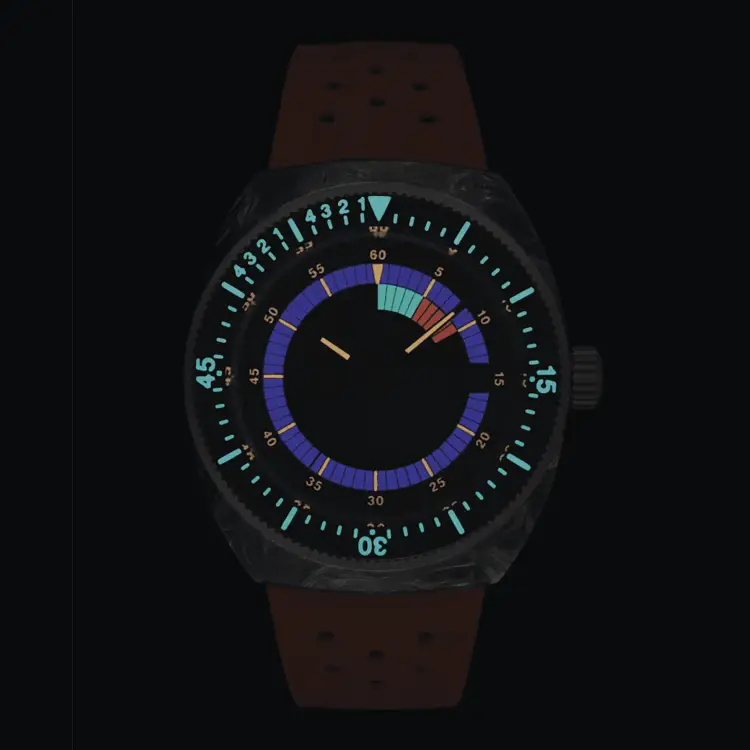 Das schwarze Zifferblatt mit mehrfarbiger Leuchtmasse sorgt für optimale Ablesbarkeit – Zeiger leuchten gelb, Indizes orange und der Minutenring blau. Rote und grüne Segmente zwischen 12 und 2 Uhr erinnern an klassische Regatta-Timer. Mit einer Wasserdichtigkeit von 300 Metern ist die Tissot Sideral Powermatic 80 ideal für alle, die Vintage-Design, Innovation und Abenteuerlust in einem Zeitmesser suchen.