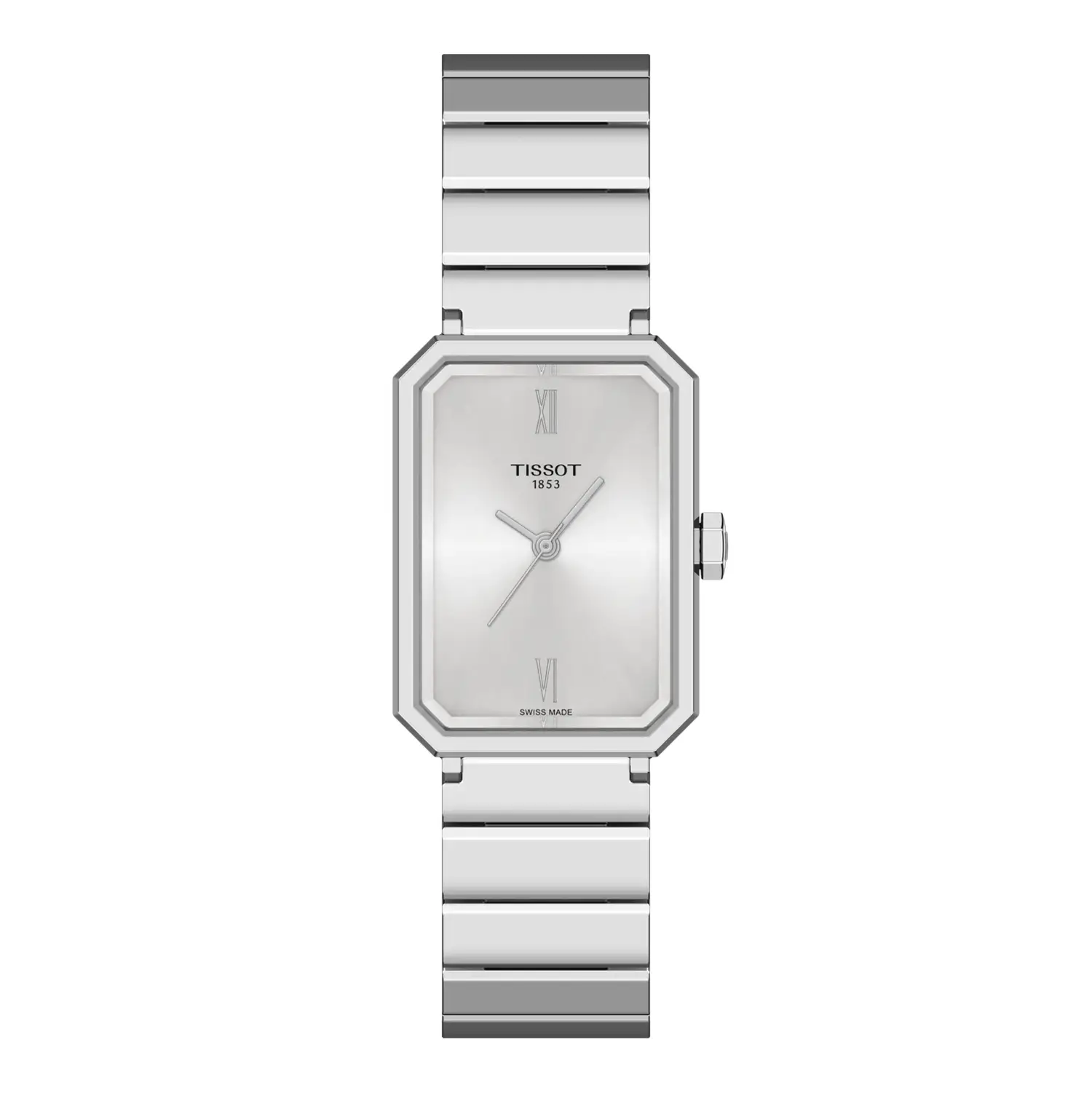 Die Tissot SRV 30mm T160.110.11.033.00 Uhr ist eine elegante Hommage an den Art-Déco-Stil, sichtbar in ihrem fein gearbeiteten rechteckigen Gehäuse aus 316L-Edelstahl. Mit den Maßen 30 × 21,8 mm wirkt sie zart, aber charakterstark. Das silberne Zifferblatt mit römischen Ziffern und gebläuten Zeigern wird durch ein kratzfestes Saphirglas geschützt und strahlt zeitlose Raffinesse aus.