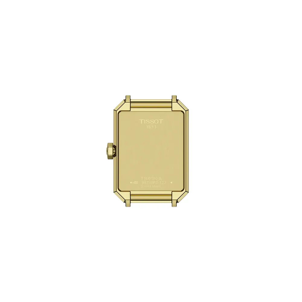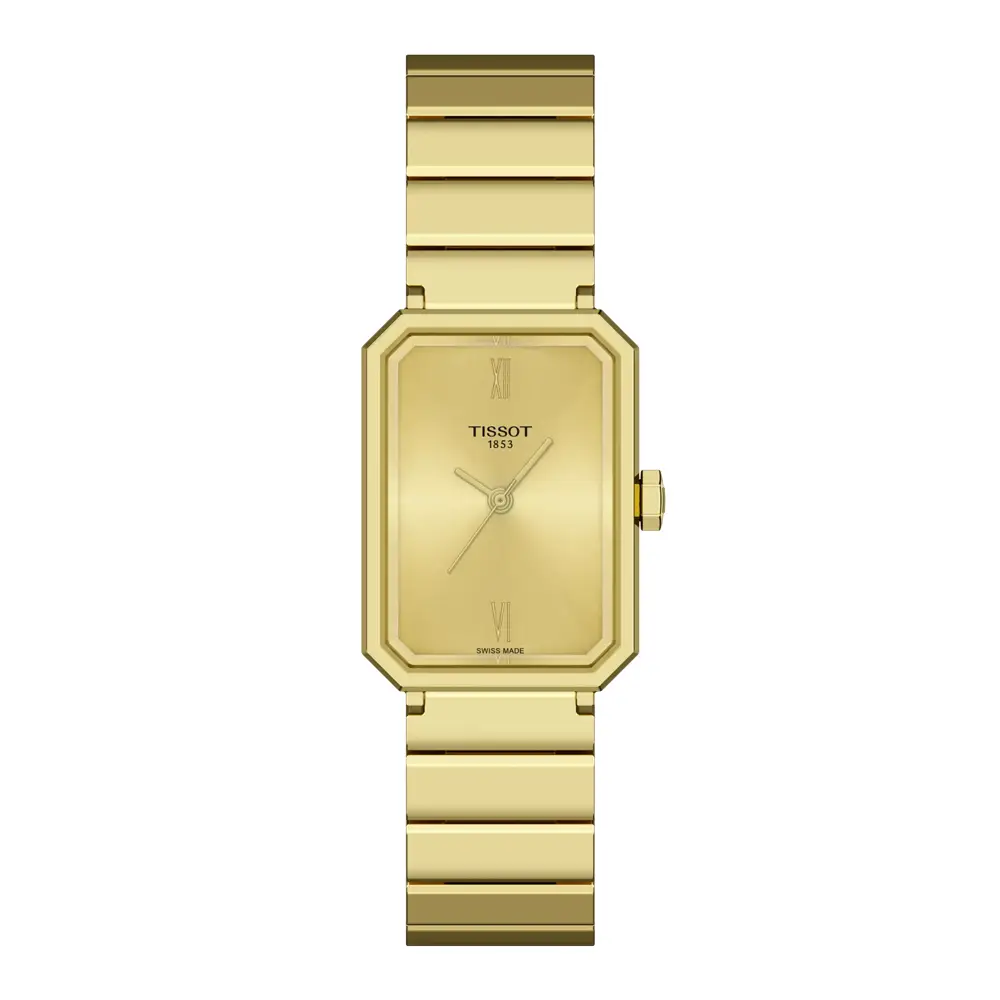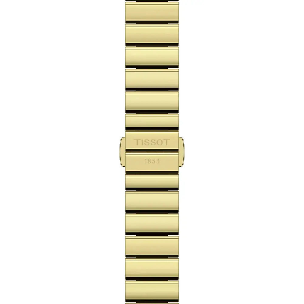 Die Tissot SRV 30mm bietet eine elegante Neuinterpretation des klassischen Designs der 1970er-Jahre und präsentiert sich in einem rechteckigen 21,8 × 30 mm Edelstahlgehäuse mit gelbgoldener PVD-Beschichtung. Saphirglas und eine Wasserdichtigkeit von 5 bar sorgen für hohe Alltagstauglichkeit, während die warmen Goldtöne der Uhr eine edle, schmuckartige Ausstrahlung verleihen.