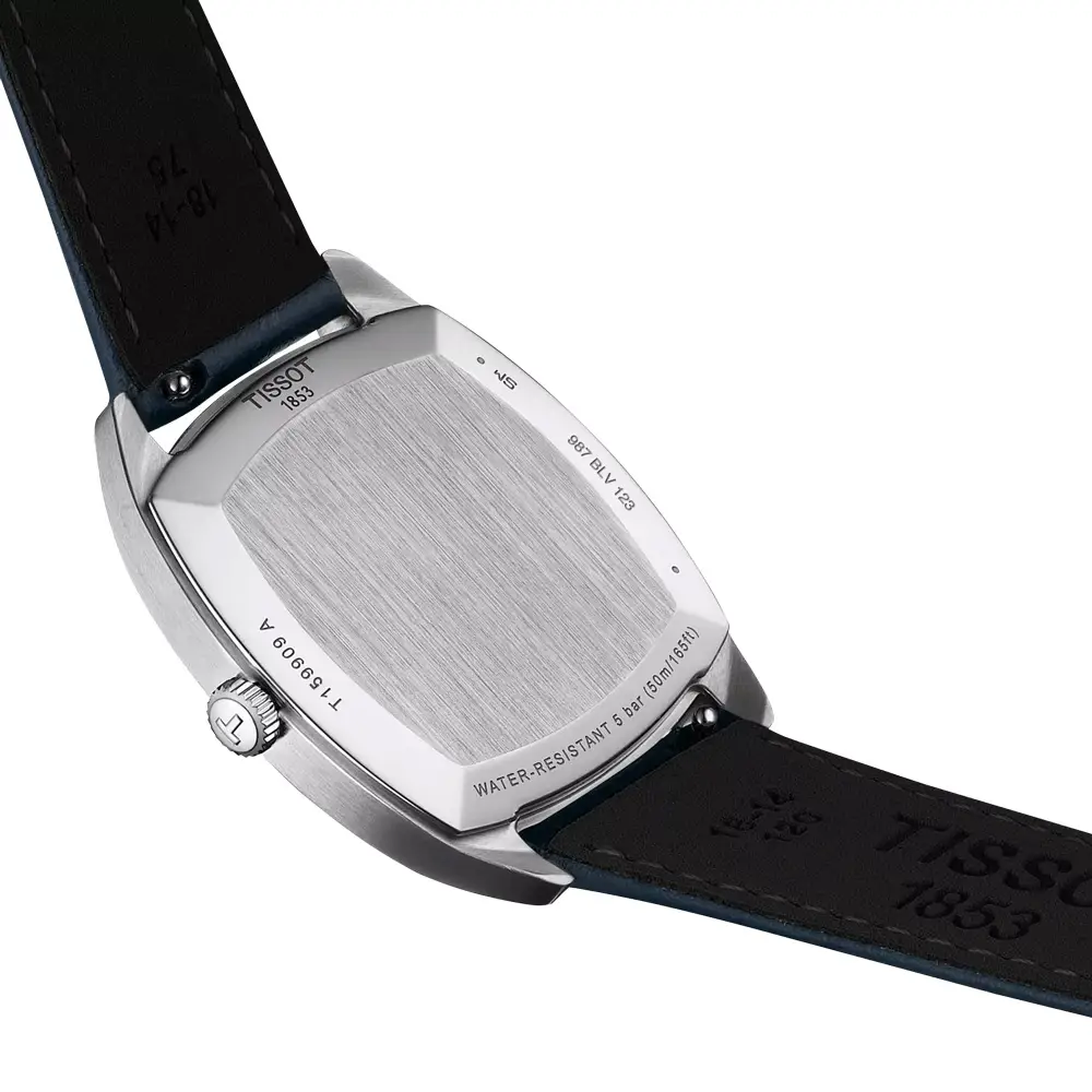 Die Tissot Stylist vereint ein modernes eckiges Gehäuse mit eleganter, zeitloser Ästhetik — das polierte 316L-Edelstahlgehäuse (32 × 32 mm) und das blaue Zifferblatt mit sanftem Farbverlauf sorgen für einen markanten, zugleich raffinierten Look, ideal für den Stadtalltag wie auch für formelle Anlässe. Das dunkelblaue Lederarmband bietet Komfort und einen stilvollen Kontrast, während die markanten römischen Ziffern einen Hauch klassischer Eleganz einbringen.