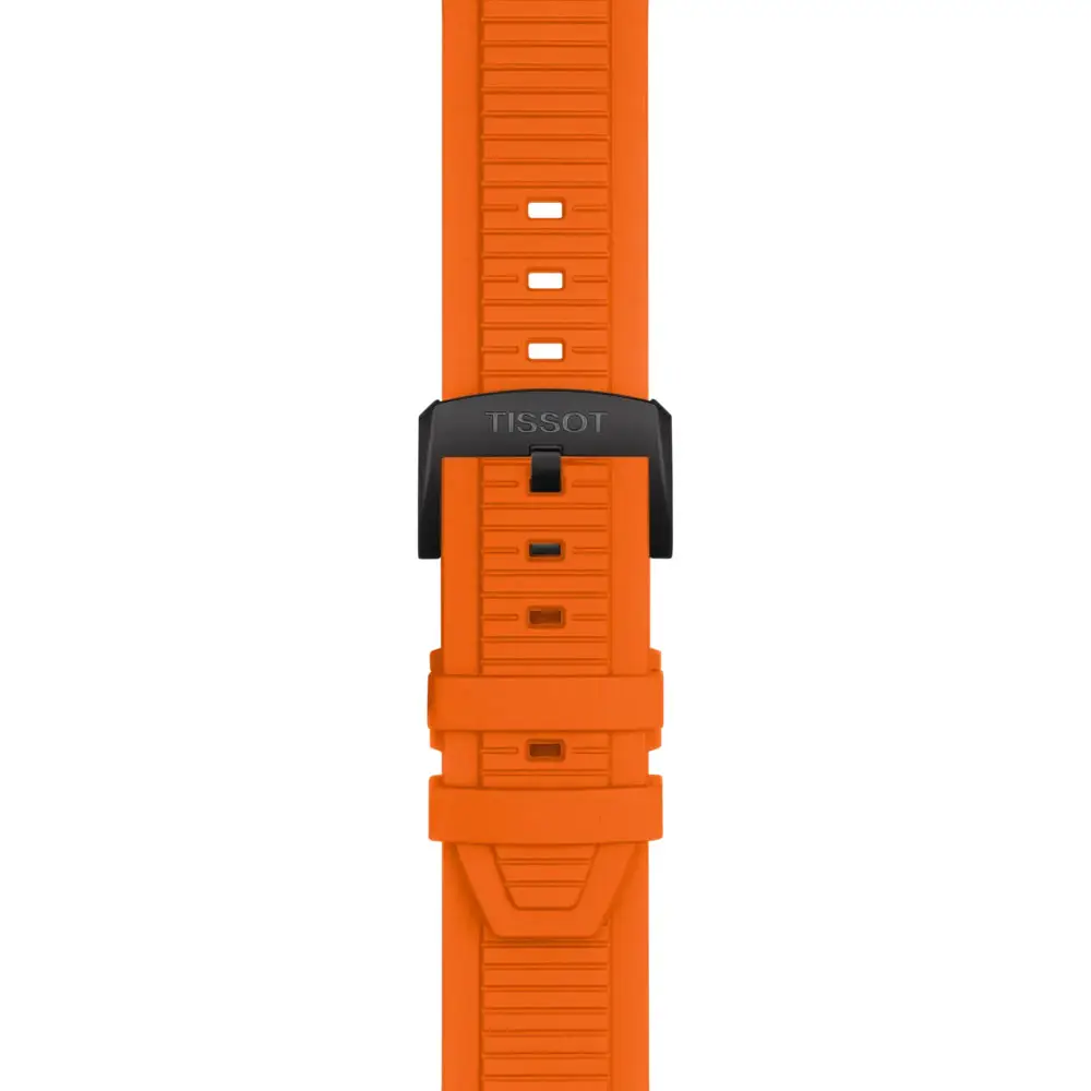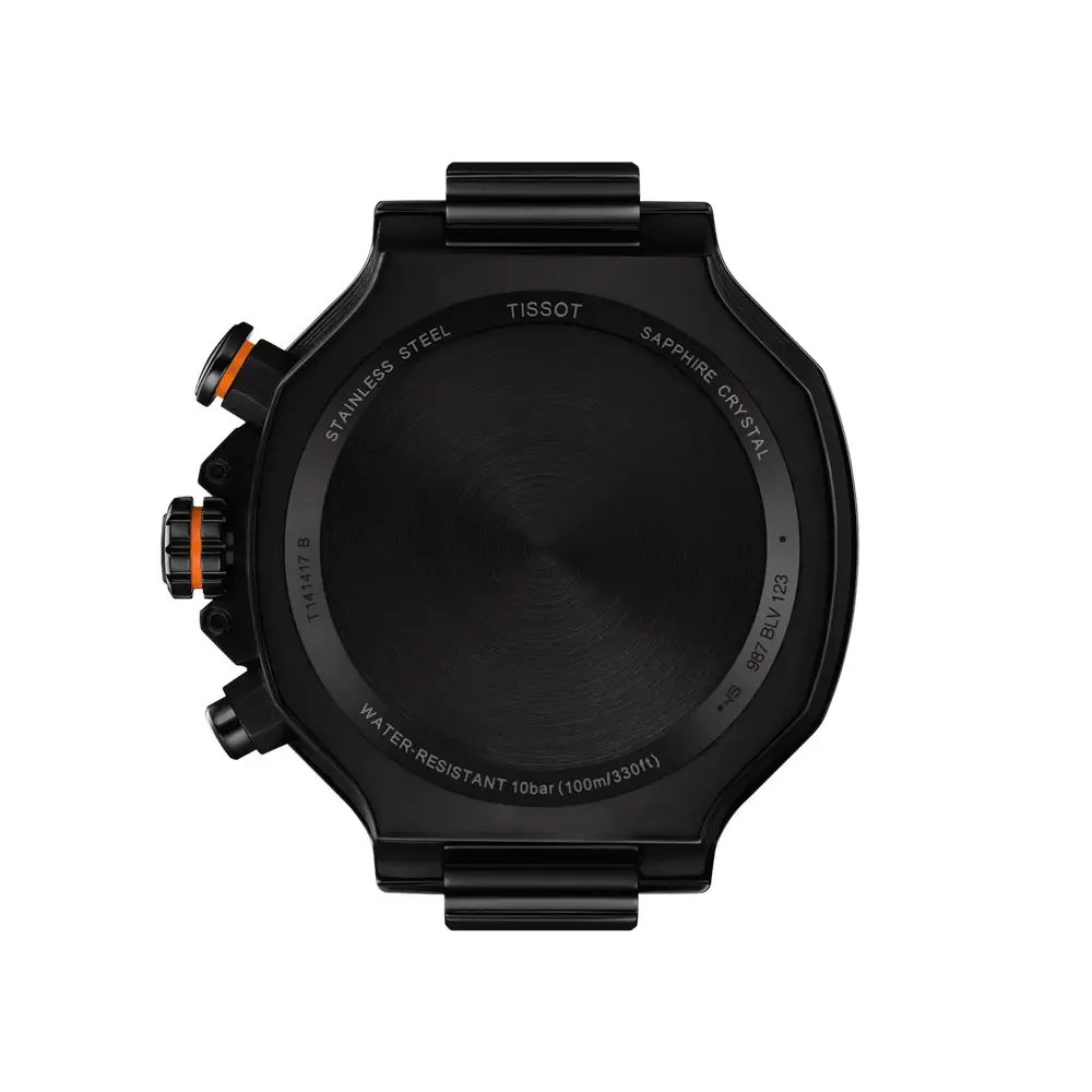Die Tissot T-Race Quartz Chronograph T141.417.37.051.02 verkörpert Leidenschaft für Motorsport, Leistung und Schweizer Präzision. Ihr 45-mm-Edelstahlgehäuse (316L) mit schwarzer PVD-Beschichtung wird durch ein schwarzes Zifferblatt mit orangefarbenen Akzenten ergänzt – inspiriert vom Design moderner Rennmotorräder.