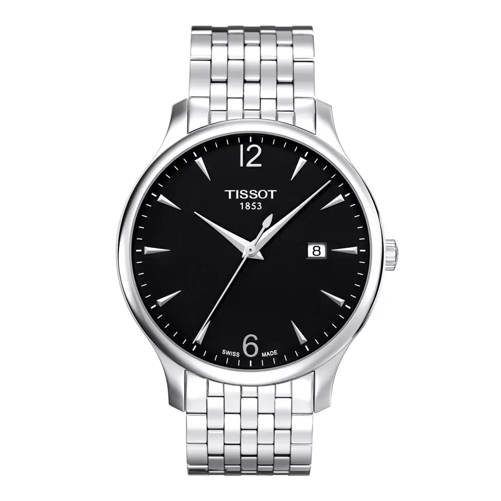 Die Tissot Tradition Quartz T063.610.11.057.00 vereint klassische Eleganz, modernes Design und Schweizer Präzision. Das 42-mm-Edelstahlgehäuse wird durch ein schwarzes Zifferblatt mit feiner Struktur, schlanken Indizes und polierten Zeigern ergänzt, die der Uhr einen eleganten und zeitlosen Charakter verleihen.