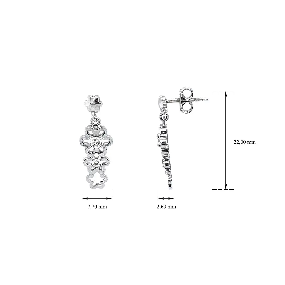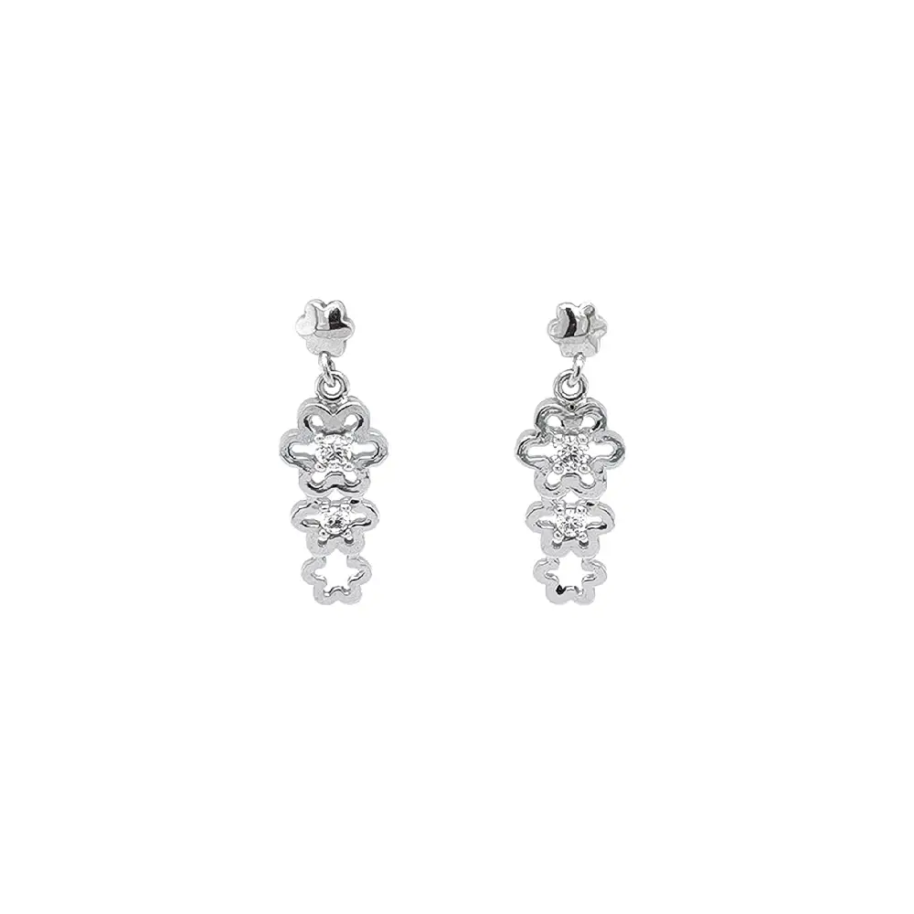 Weißgold-Ohrringe mit Blumenmuster und Zirkonen