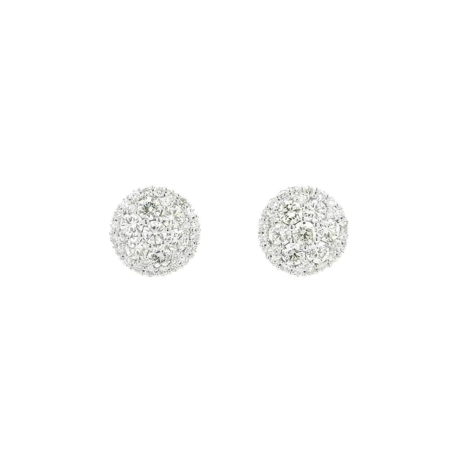 Diese eleganten Weißgold-Ohrringe überzeugen durch ihr feines, zugleich auffälliges Design. Der charakteristische Mittelpunkt ist die kuppelförmige Oberfläche, besetzt mit Dutzenden brillantgeschliffenen Diamanten, die eine durchgehend funkelnde Struktur erzeugen. Dank der präzisen Pavé-Fassung wirken die Ohrringe luxuriös und dennoch perfekt ausgewogen.