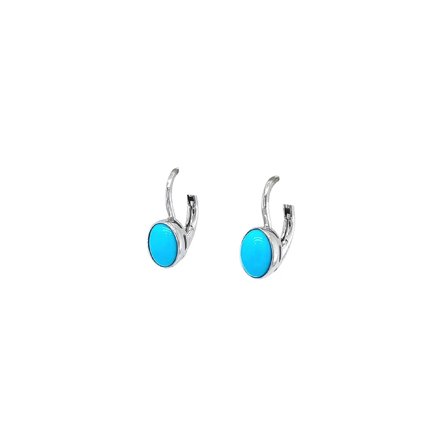 Diese eleganten Ohrringe aus Weißgold sind mit einem leuchtend türkisblauen, ovalen Stein in glatter Fassung versehen und strahlen zeitlose Frische und Eleganz aus. Die kräftige Farbe bringt das Gesicht zum Leuchten, während das polierte Weißgold einen modernen, edlen Look unterstreicht.