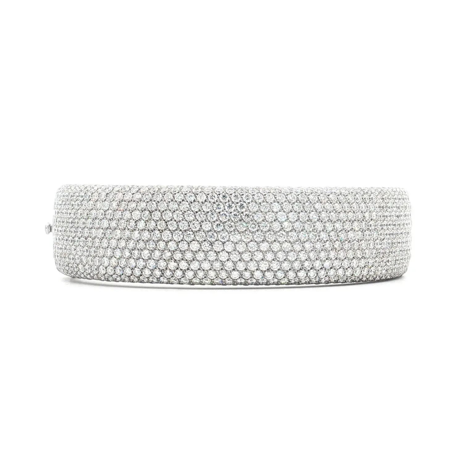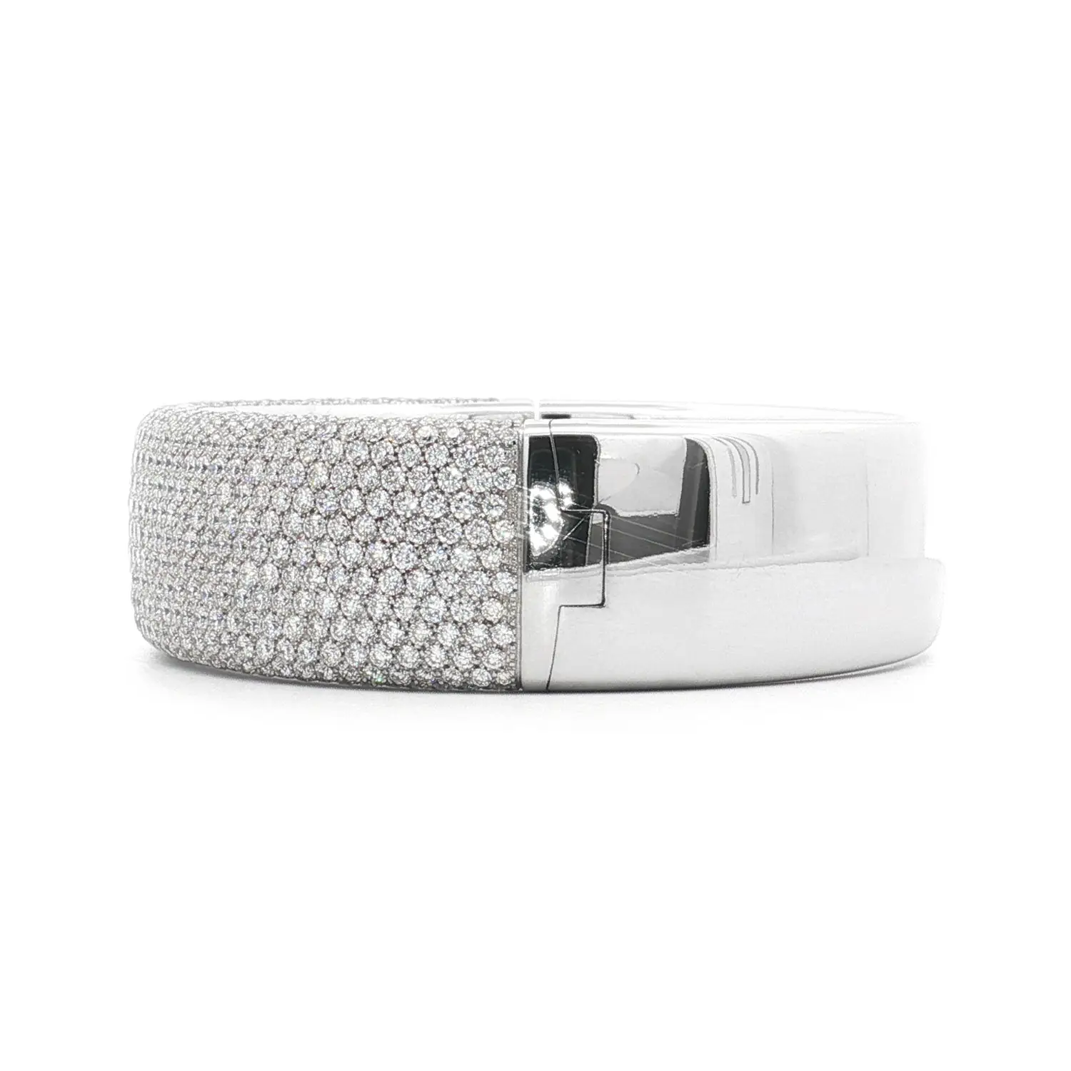 Das Armband ist mit 710 natürlichen weißen Diamanten besetzt, mit einem Gesamtgewicht von 12,90 ct und einem Durchmesser von 1,70 mm je Stein. Der Rundschliff sorgt für maximale Brillanz und perfekte Lichtreflexion. Diamanten in der Farbe G und Reinheit VS verleihen dem Schmuckstück eine gleichmäßige, leuchtende Ausstrahlung – wie ein Band aus purem Licht um das Handgelenk.