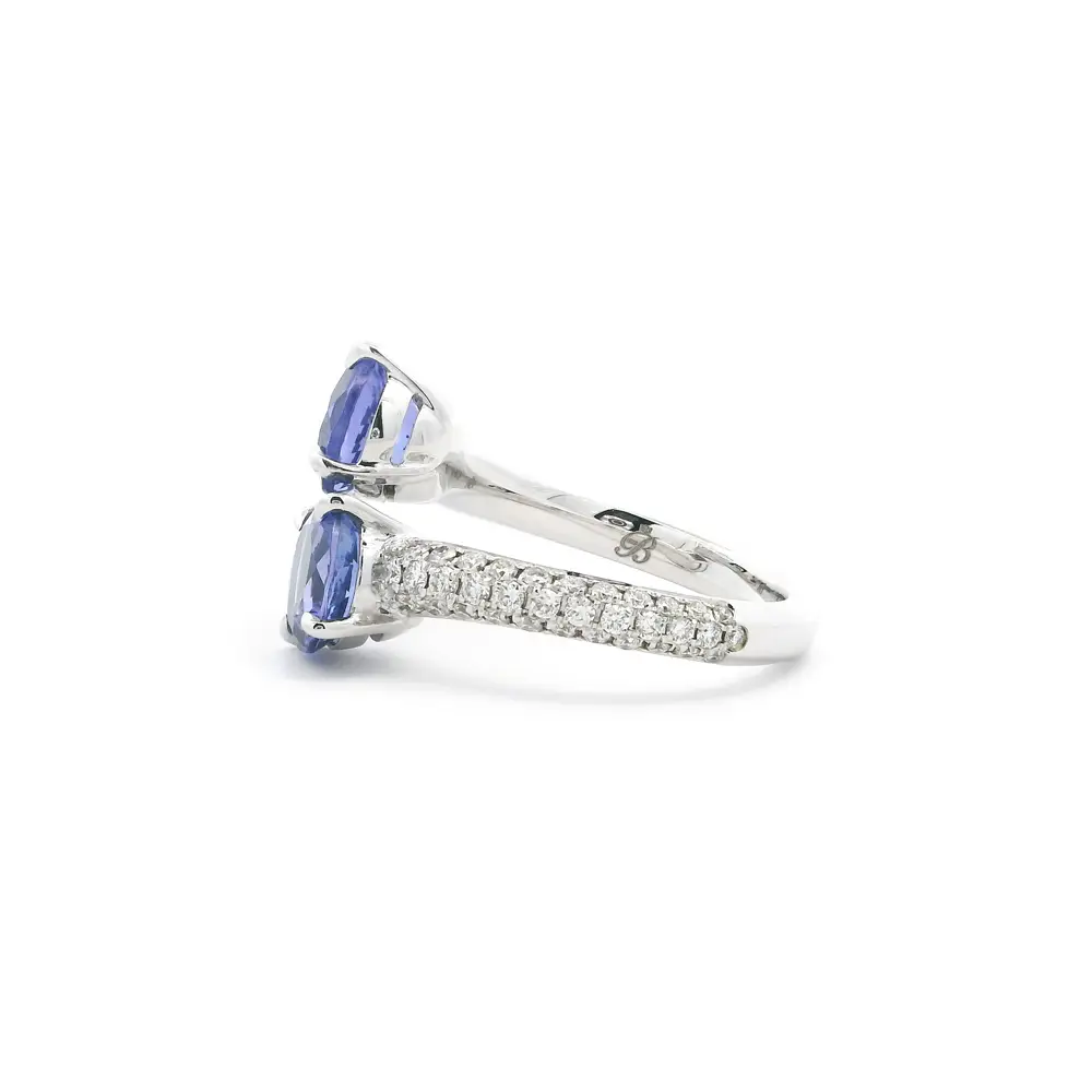Weißgoldring mit zwei Tansaniten und Diamanten