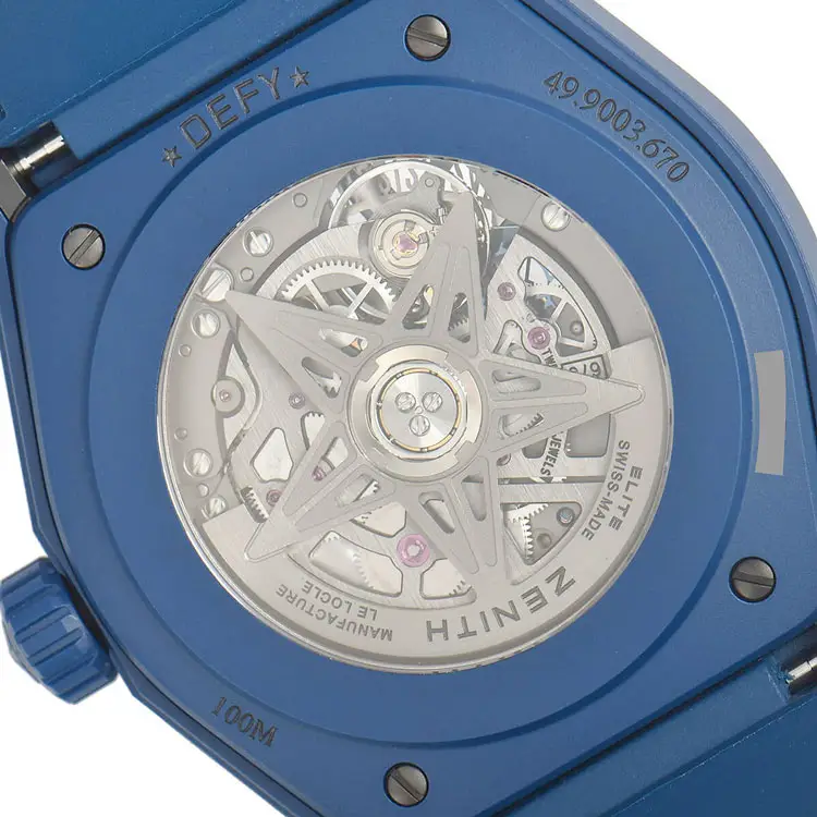 Kennzeichnend für die Defy-Kollektion sind kantige Gehäuse, häufig aus Titan, Karbon oder Keramik, und skelettierte Zifferblätter, die den Blick auf die Hochfrequenzwerke El Primero oder das revolutionäre Kaliber Defy Inventor freigeben. Einige Modelle erreichen Frequenzen von bis zu 360.000 Halbschwingungen pro Stunde (50 Hz), die eine außergewöhnlich genaue Zeitmessung gewährleisten.
